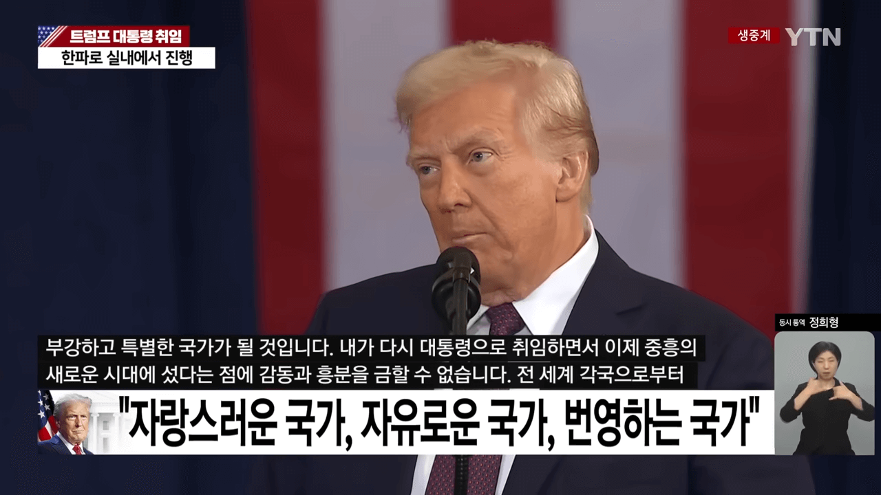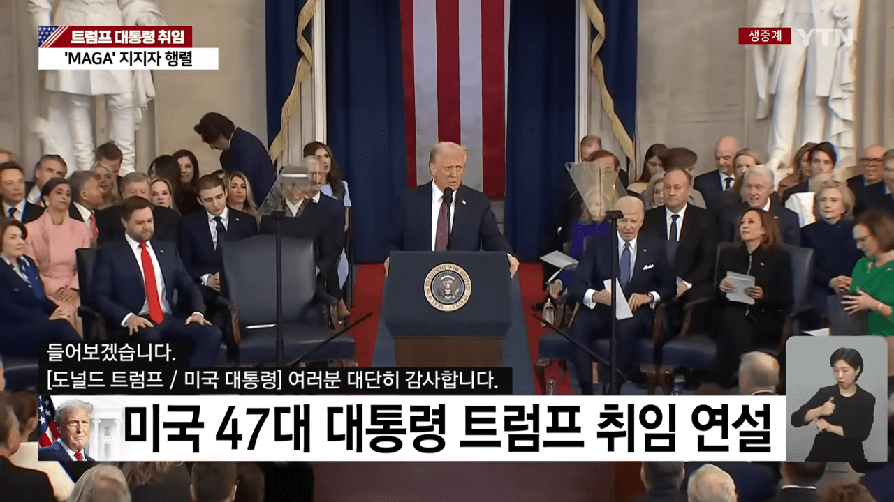취임식은 미국 동부 시각 정오에 시작되었으며, 전통적인 취임 선서와 함께 약 30분간의 취임 연설이 이어졌습니다. 연설에서 그는 '미국 우선주의'를 재차 강조하며, 경제 성장, 안보 강화, 그리고 국민 통합을 핵심 주제로 삼았습니다. 이와 함께 틱톡, 트위터, 유튜브 등 소셜 미디어 플랫폼을 활용해 국민과의 직접 소통을 강화하겠다는 새로운 전략을 밝히기도 했습니다.