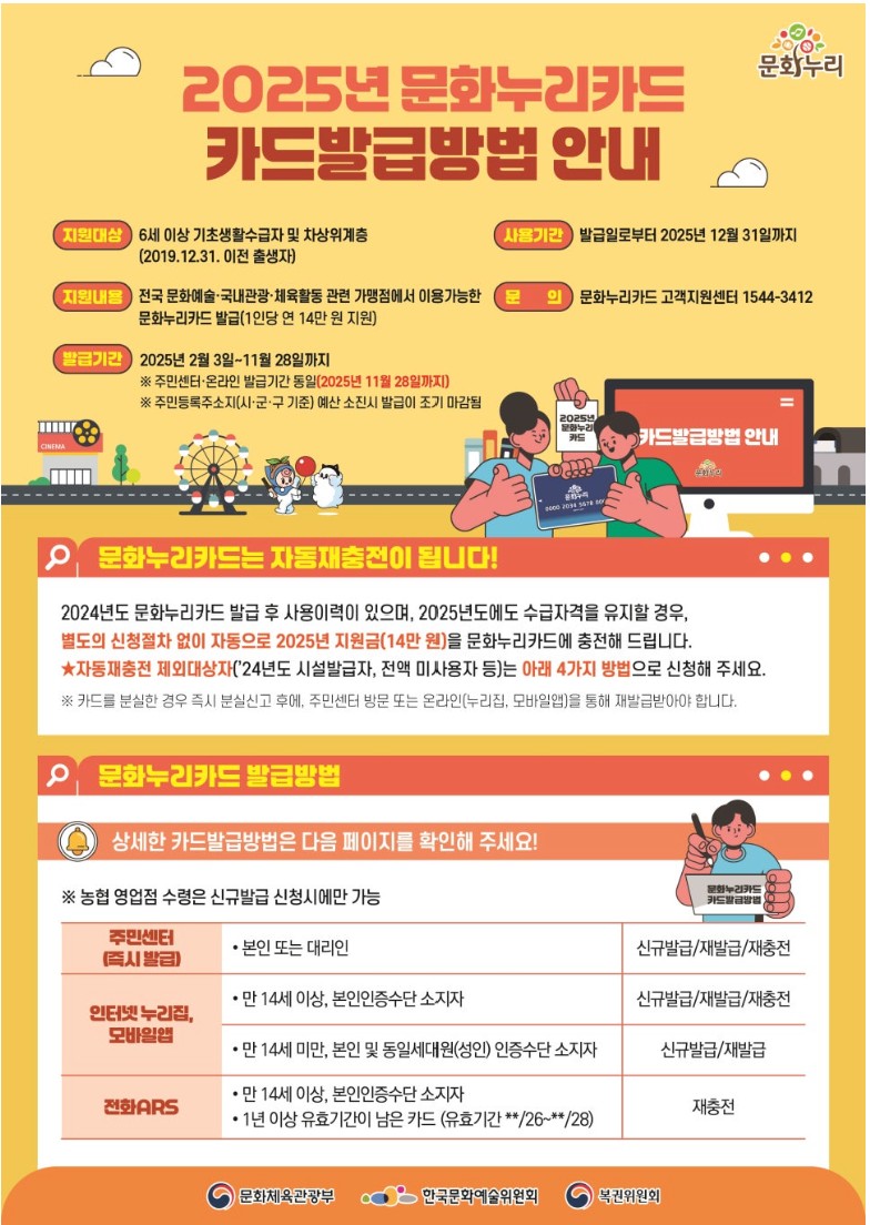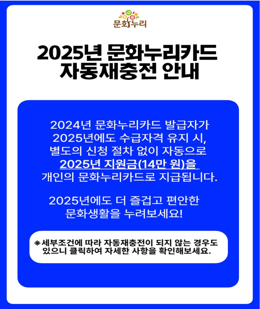 - 2024년에 문화누리카드를 발급받았다면? 👉 2025년 2월 3일 자동 충전!
