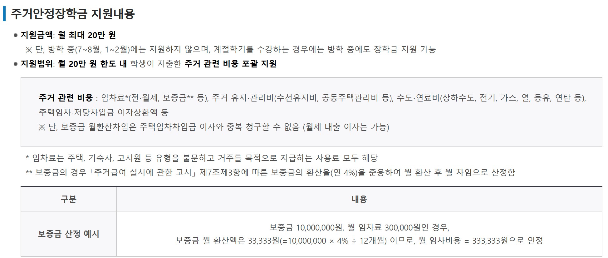 ✔️ 원거리 대학 진학으로 주거비 부담이 큰 학생 지원