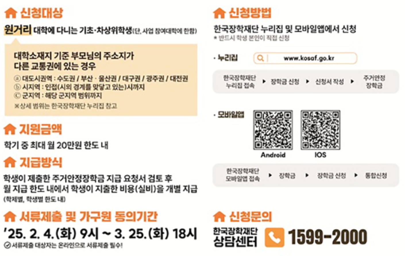 📢 "2025 주거안정장학금"은 대학생들의 주거비 부담을 줄여 학업에 집중할 수 있도록 돕는 제도입니다.