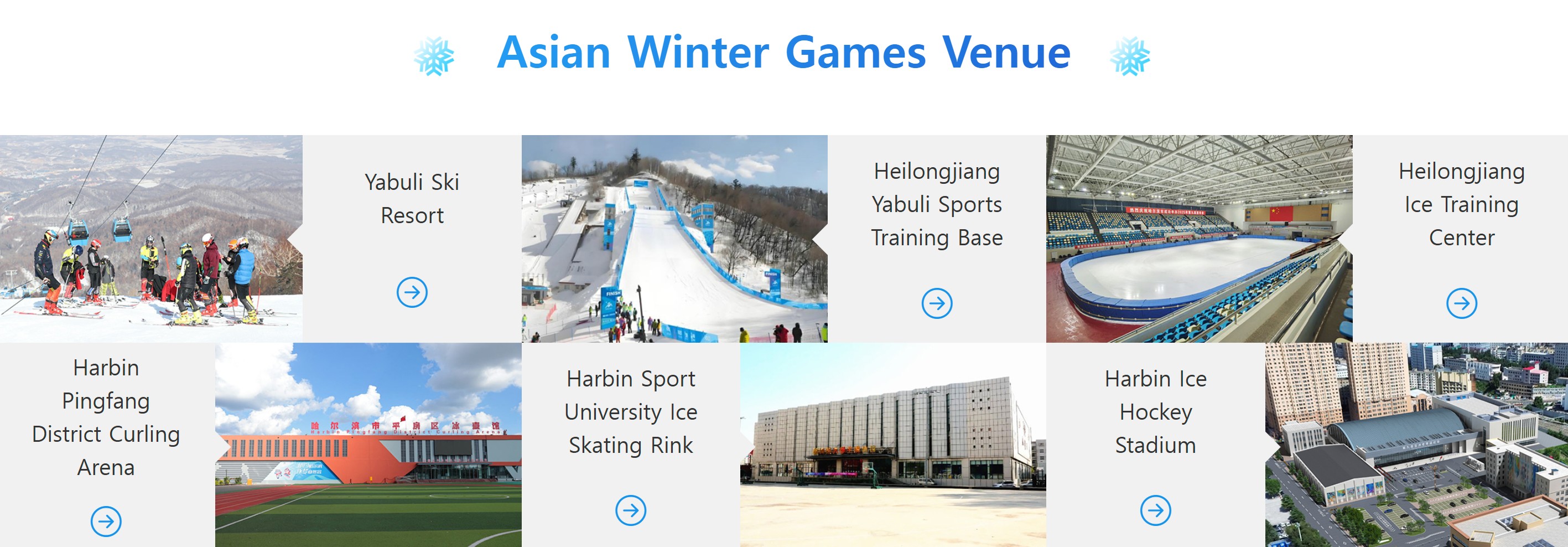 대회는 하얼빈 내 다양한 경기장에서 진행됩니다.